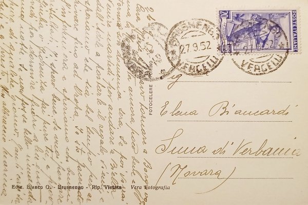 Cartolina - Brusnengo - Corso Libertà e Piazza Valle - 1952