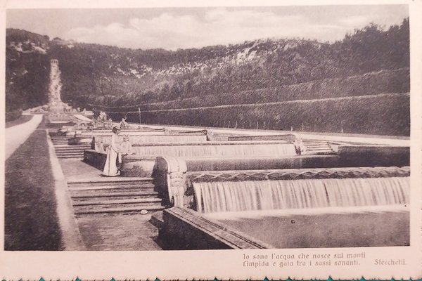 Cartolina - Caserta - Parco Reale - Veduta generale della Cascata - 1918