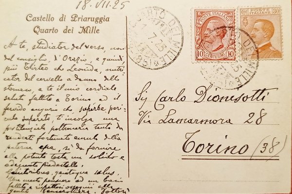Cartolina - Castello di Priaruggia ( Genova ) - Quarto dei Mille - 1925
