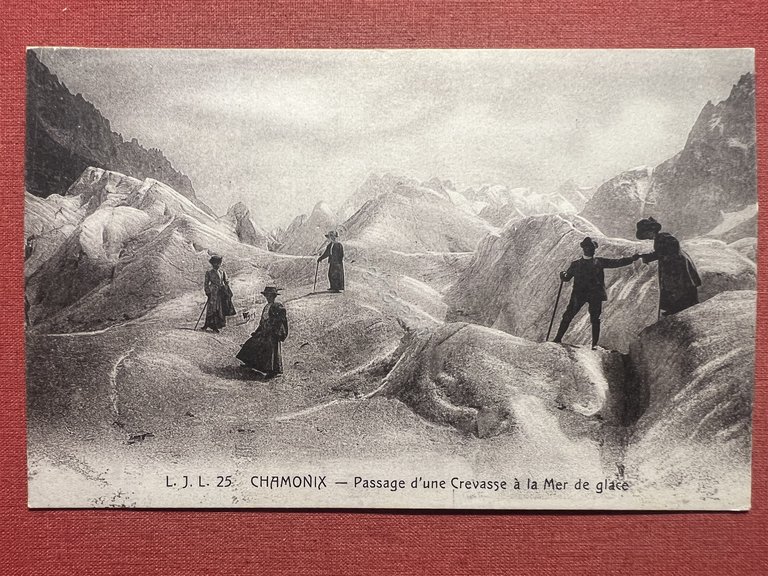 Cartolina - Chamonix - Passage d'une Crevasse à la Mer de Glace - 1900 ca.