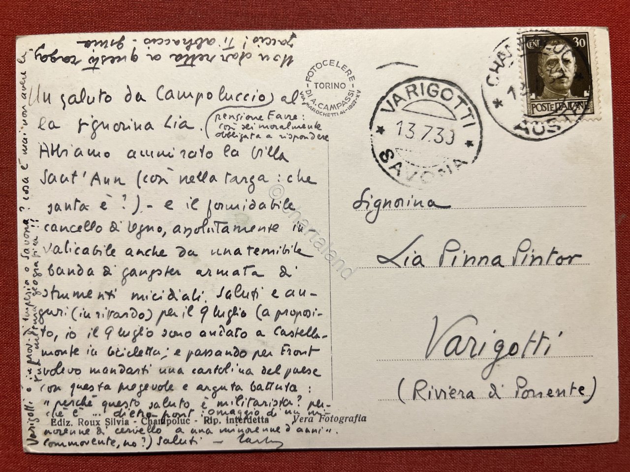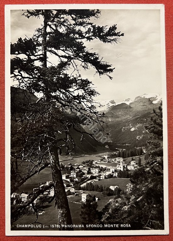 Cartolina - Champoluc ( Valle d'Aosta ) - Panorama sfondo Monte Rosa - 1939