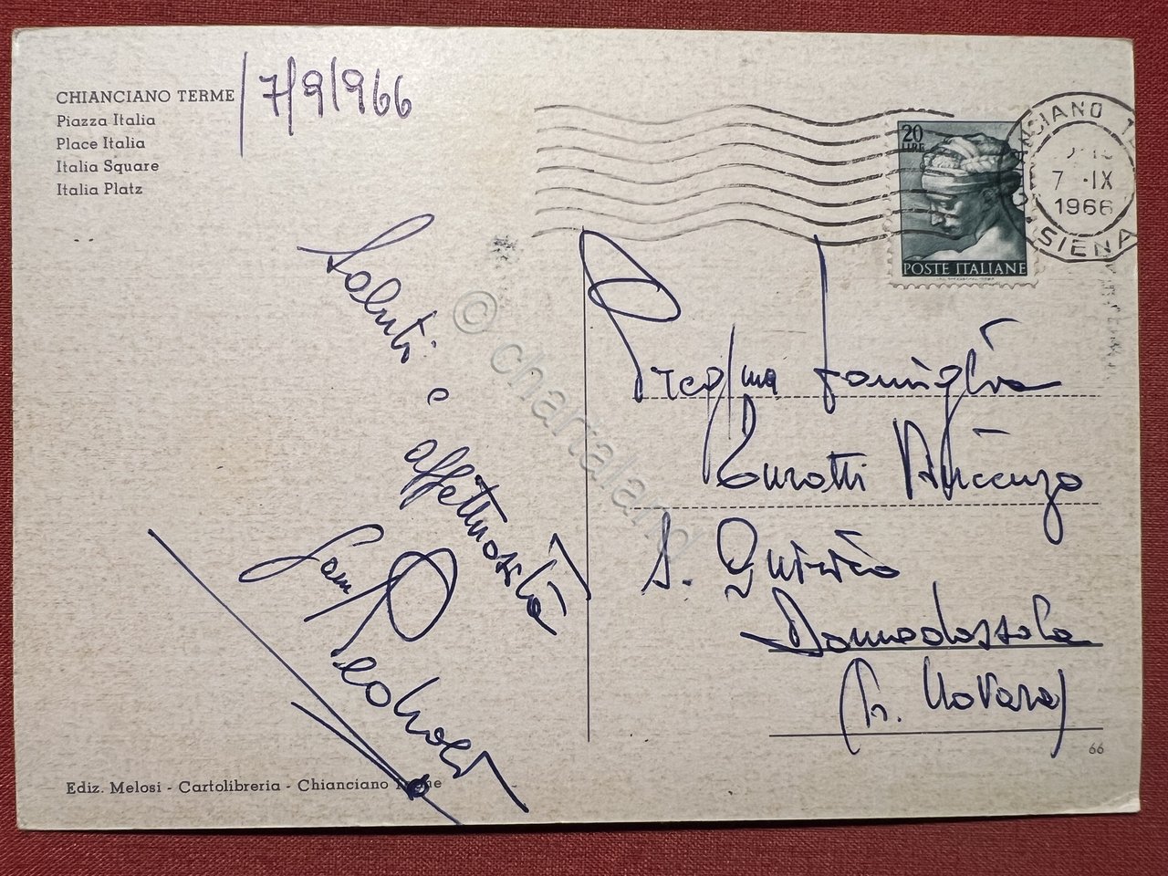 Cartolina - Chianciano Terme ( Siena ) - Piazza Italia - 1966