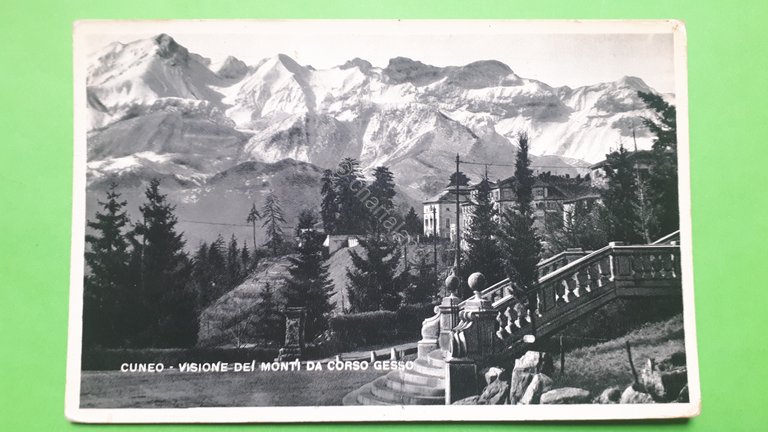 Cartolina - Cuneo - Visione dei Monti da Corso Gesso - 1950 ca.