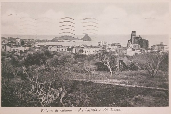 Cartolina - Dintorni di Catania - Aci Castello e Aci Trezza - 1940