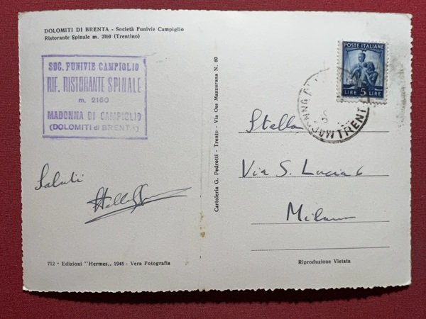 Cartolina - Dolomiti di Brenta ( Trentino ) - Società Funivie Campiglio - 1950