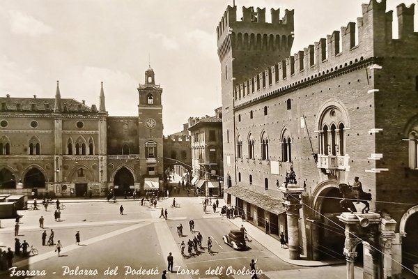 Cartolina - Ferrara - Palazzo del Popolo - Torre dell'Orologio - 1955