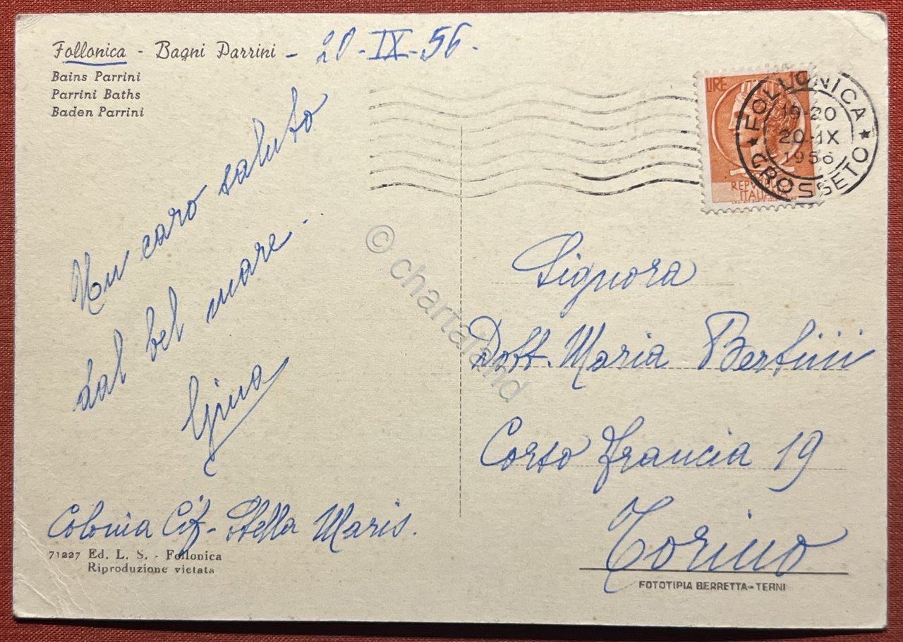Cartolina - Follonica ( Grosseto ) - Bagni Parrini - 1956