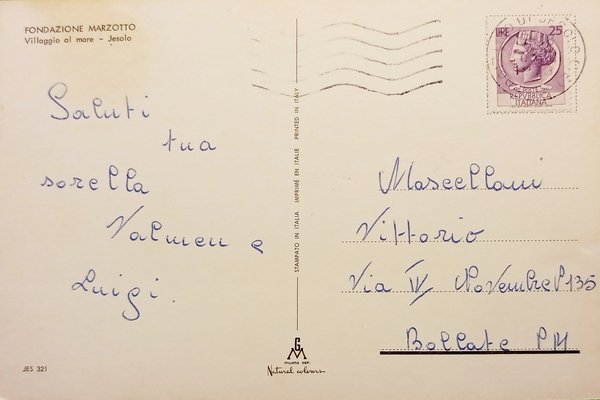 Cartolina - Fondazione Marzotto - Villaggio al Mare - Jesolo - 1973