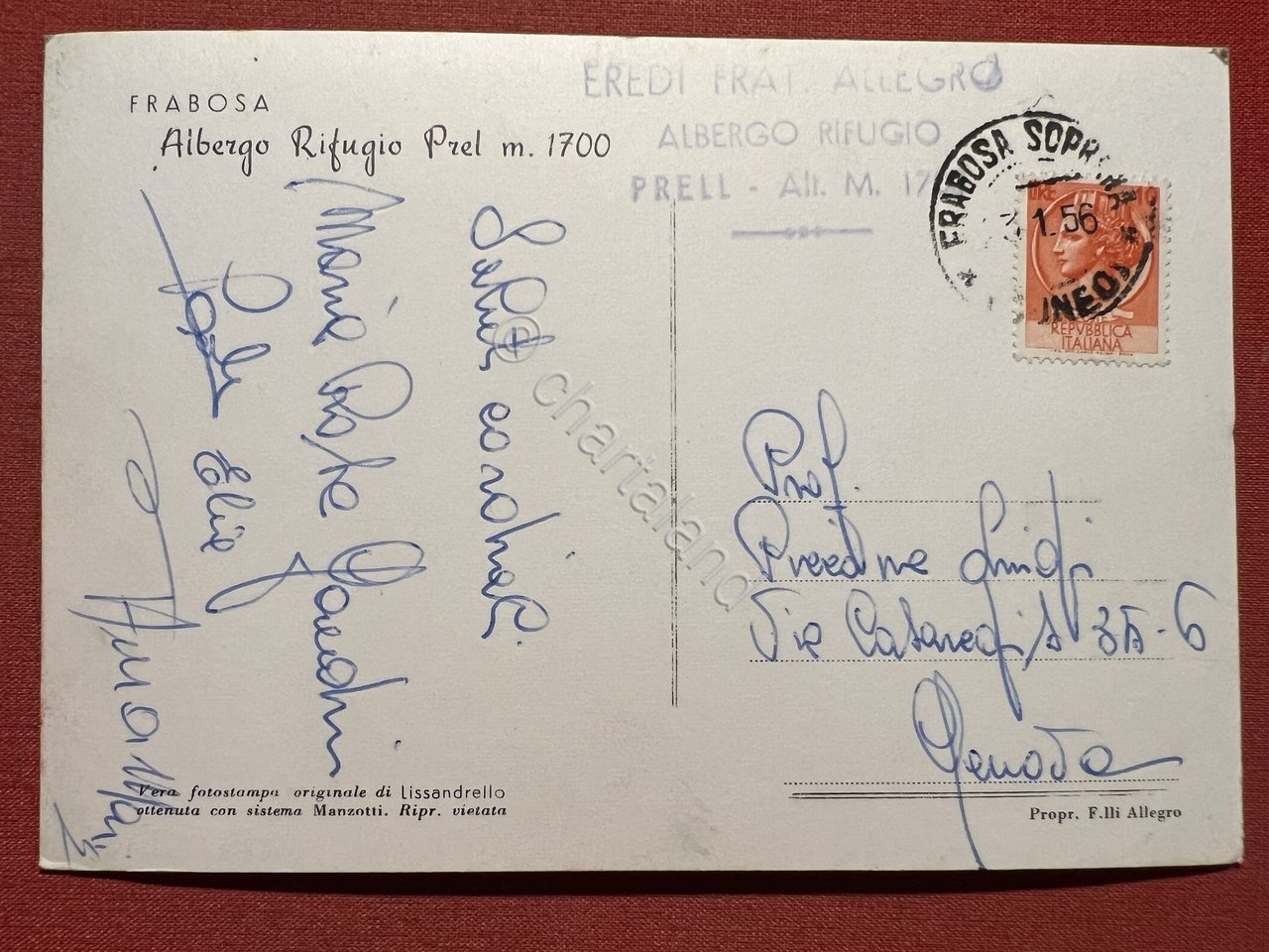 Cartolina - Frabosa - Albergo Rifugio Prel - 1956