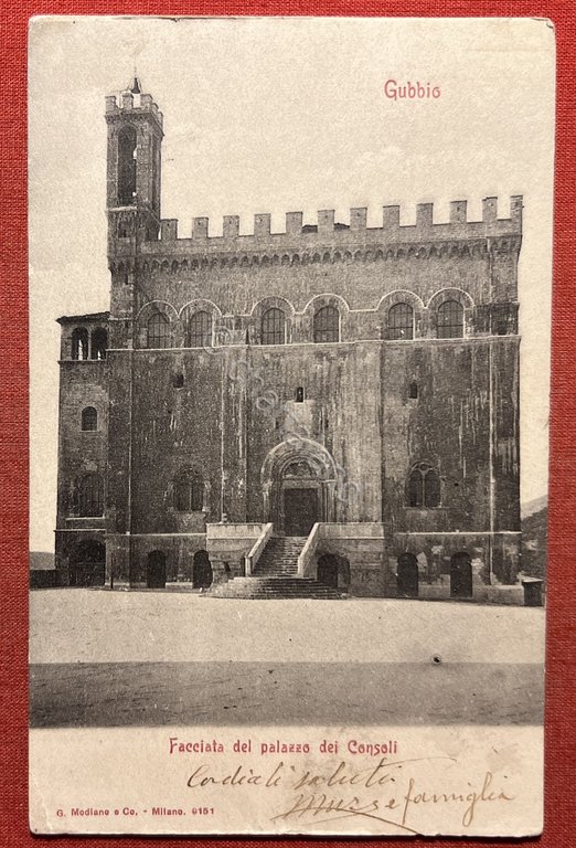 Cartolina - Gubbio - Facciata dei Palazzo dei Consoli - 1911