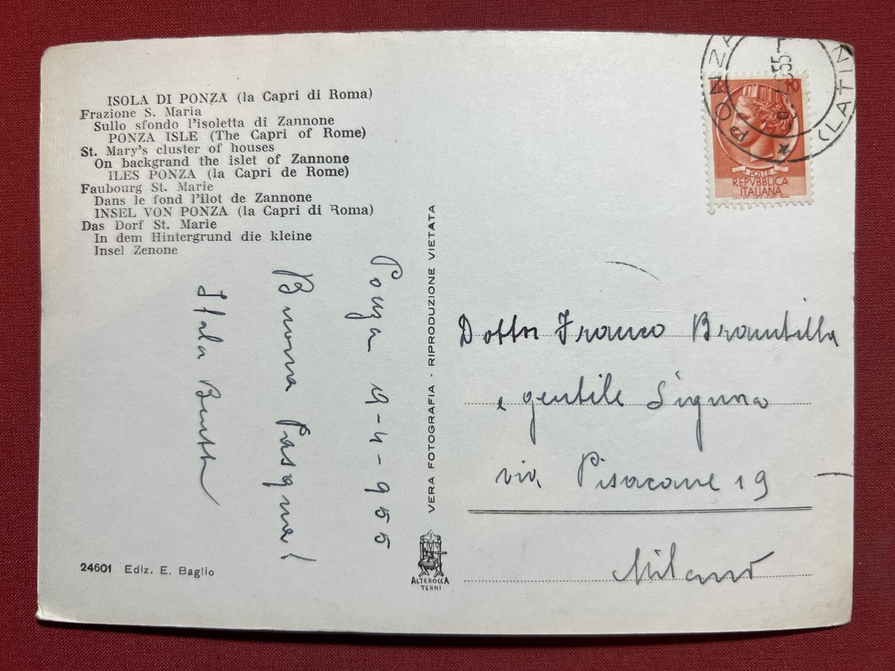 Cartolina - Isola di Ponza - La Capri di Roma - Frazione S. Maria - 1955
