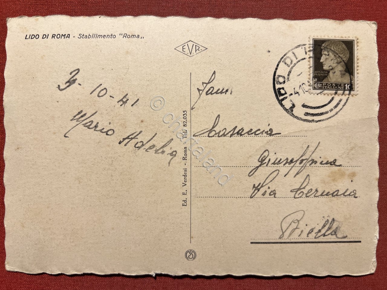 Cartolina - Lido di Roma - Stabilimento Roma - 1941