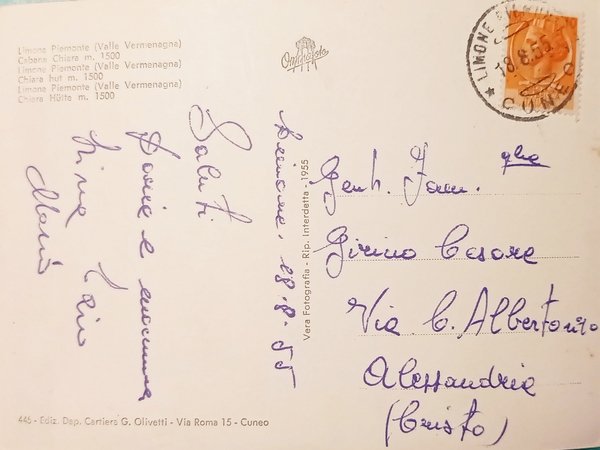 Cartolina - Limone Piemonte ( Valle Vermenagna ) - Capanna Chiara - 1955