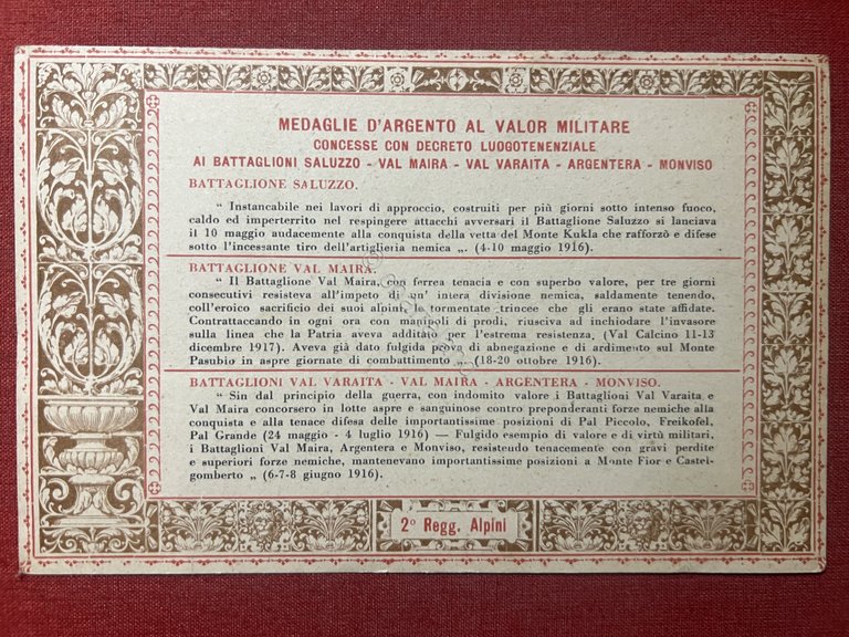 Cartolina - Medaglie d'Argento al Valor Militare - Pro Monumento ai Caduti 1916