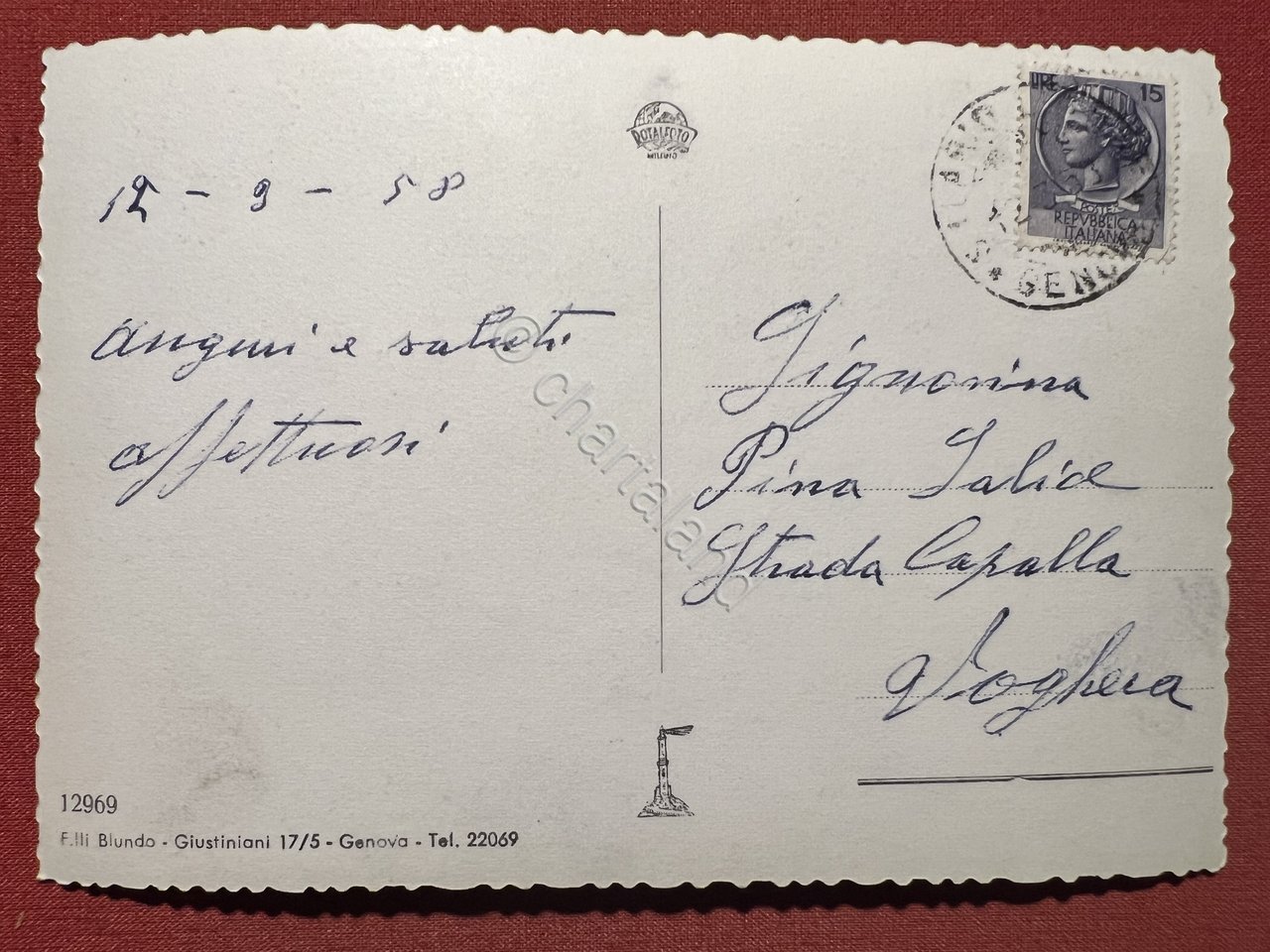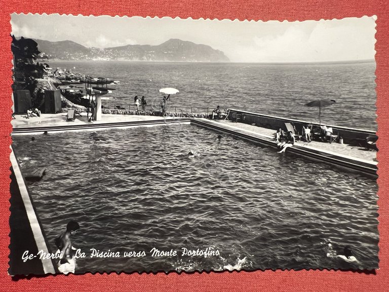 Cartolina - Nervi ( Genova ) - La Piscina verso Monte Portofino - 1958