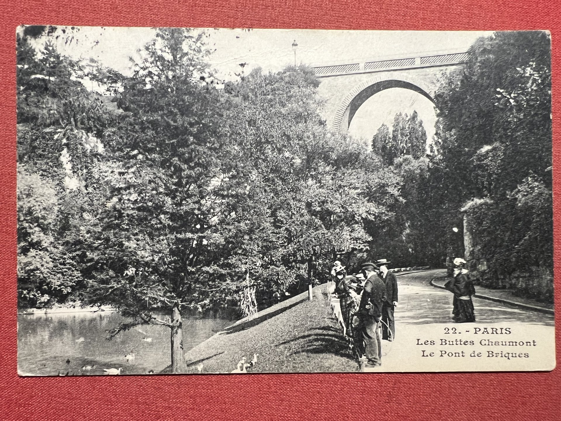 Cartolina - Paris - Les Buttes Chaumont - Le Pont de Briques - 1910