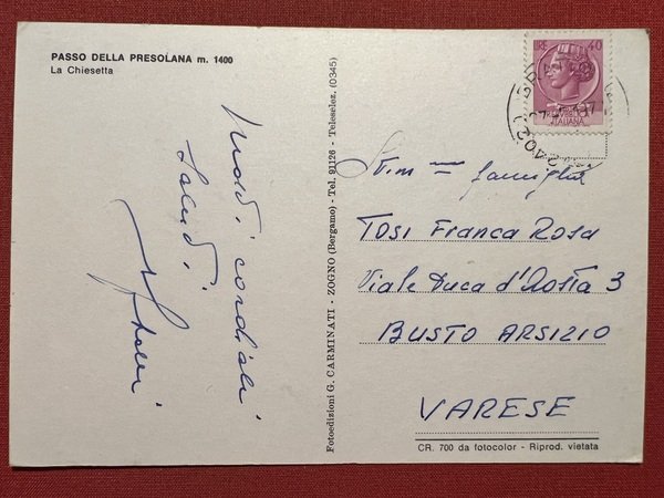 Cartolina - Passo della Presolana ( Brescia ) - La Chiesetta - 1974