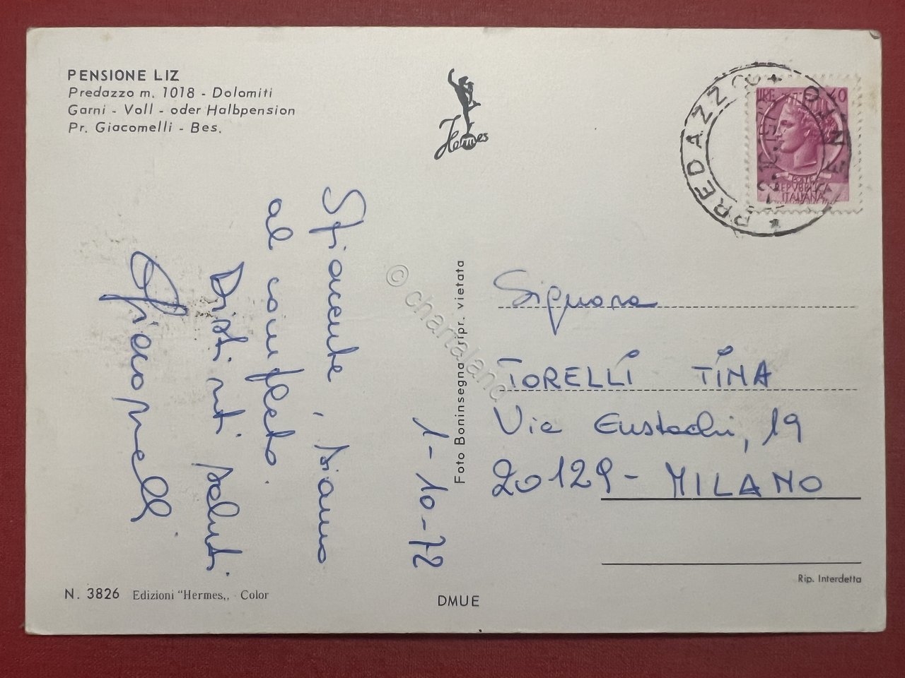 Cartolina - Pensione Liz - Predazzo - Dolomiti Garni - 1972