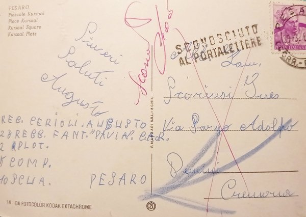 Cartolina - Pesaro - Piazzale Kursaal - 1962