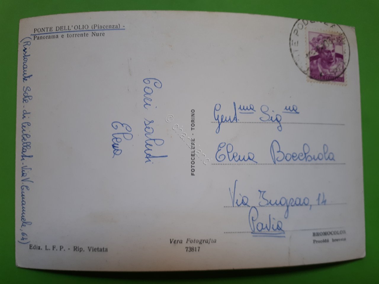 Cartolina - Ponte Dell'Olio ( Piacenza ) - Panorama e torrente Nure - 1964