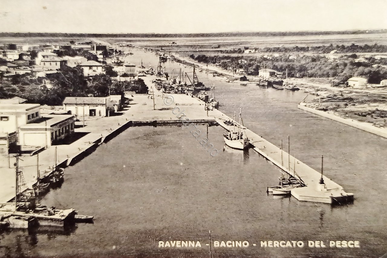 Cartolina - Ravenna - Bacino - Mercato del Pesce - 1953