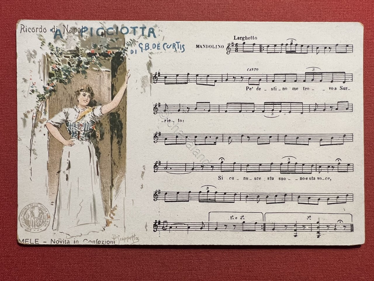 Cartolina - Ricordo di Napoli - A Picciotta di G. B. De Curtis - 1900 ca.