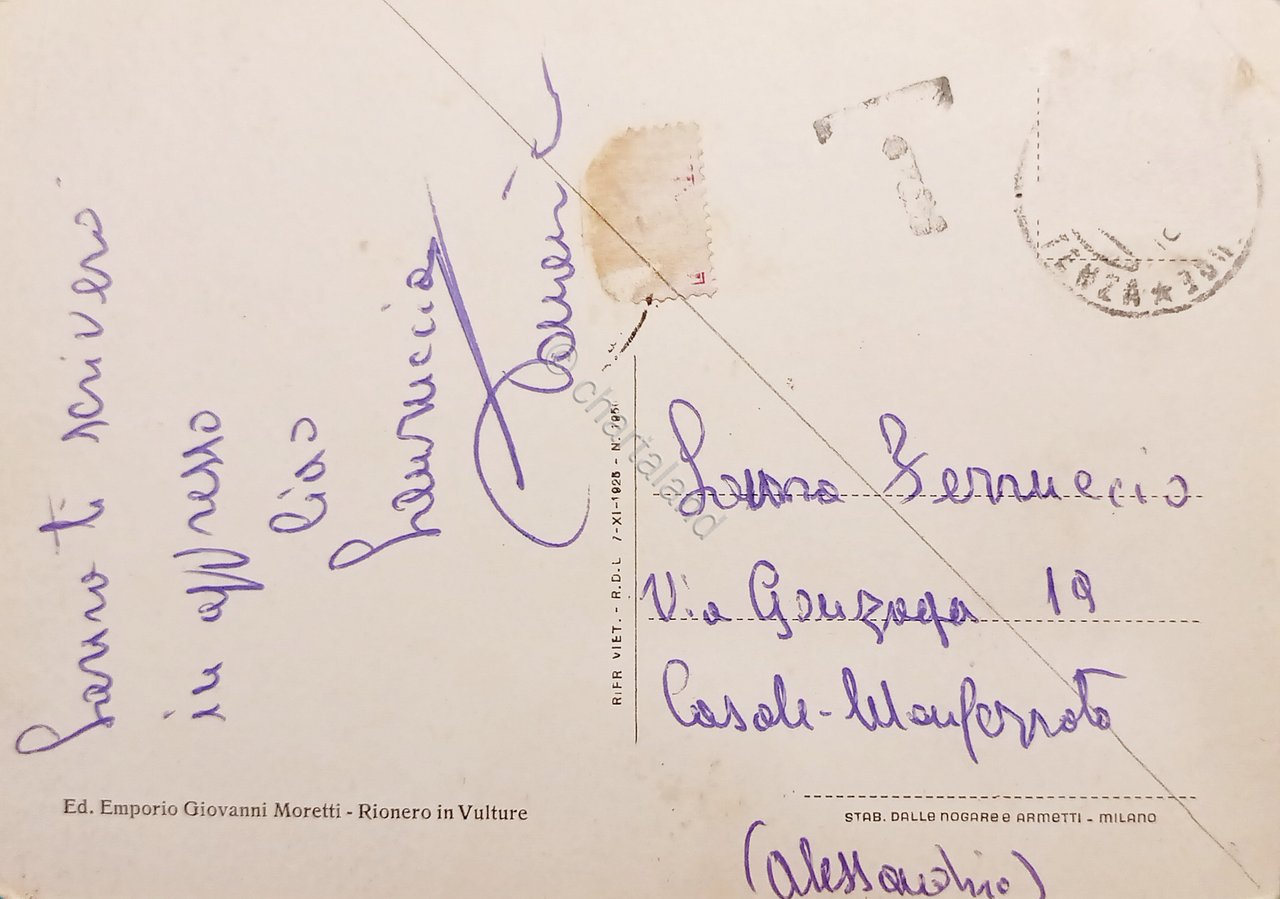 Cartolina - Rionero in Vulture - Panorama e Chiesa Matrice - 1950 ca.