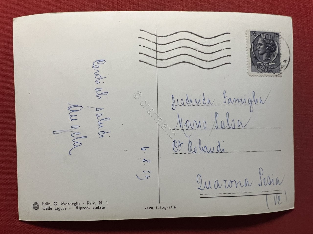 Cartolina - Riviera del Sole - Celle Ligure - Passeggiata a mare - 1959