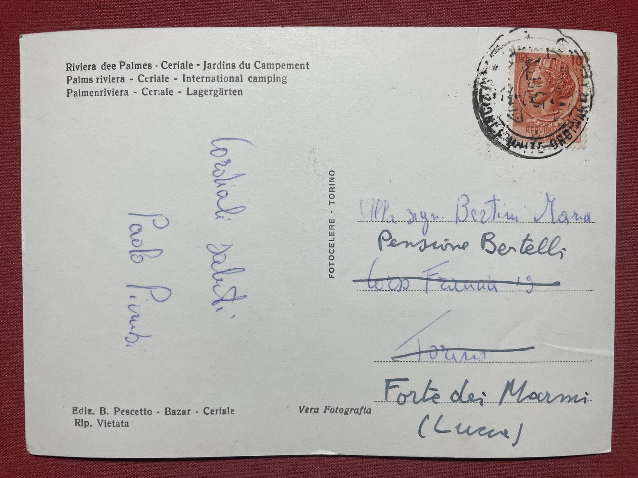 Cartolina - Riviera delle Palme - Ceriale - Giardini Camping - 1955