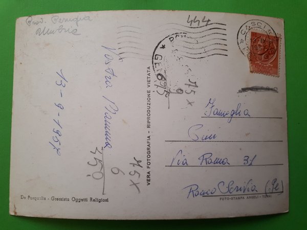 Cartolina - Roccaporena - Scoglio della Preghiera - Fontana delle Alpi - 1957