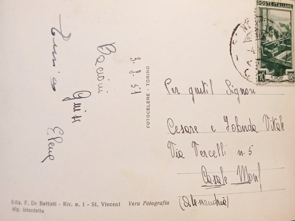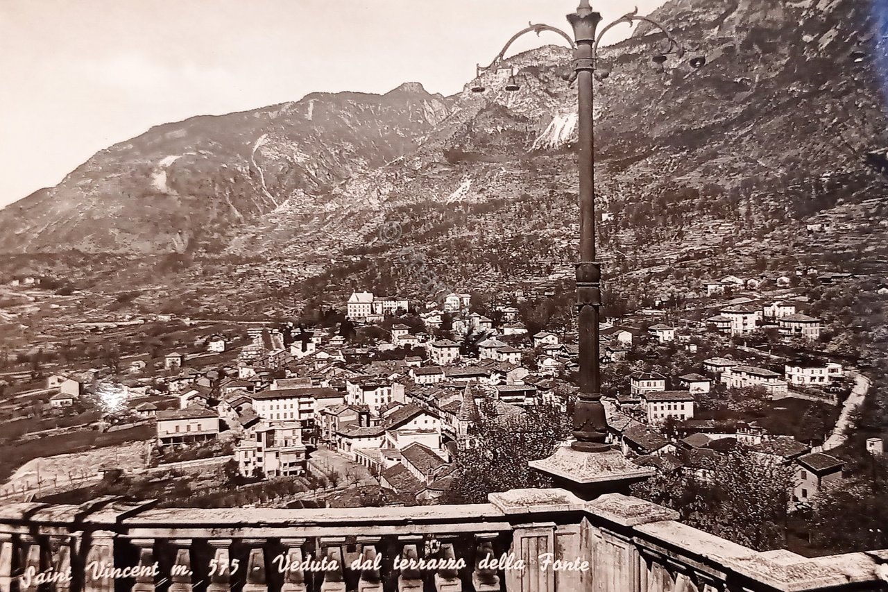 Cartolina - Saint Vincent - Veduta dal terrazzo della Fonte - 1951