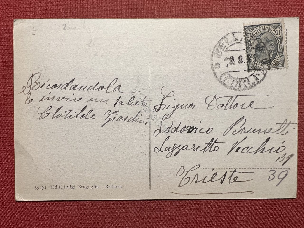 Cartolina - Saluti da Bellaria ( Rimini ) - Bagnanti alla Spiaggia - 1921