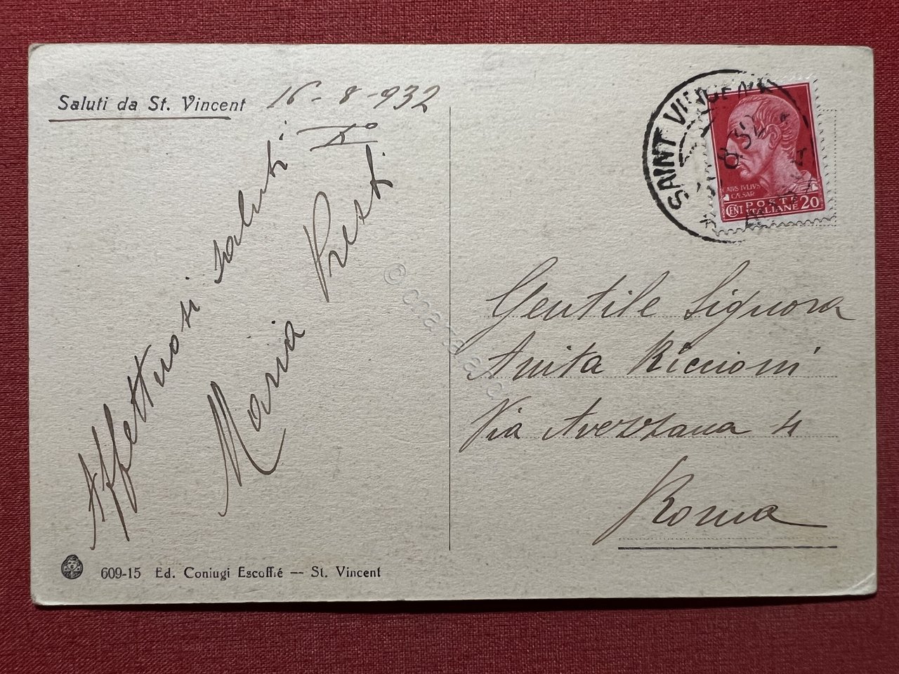 Cartolina - Saluti da Saint Vincent ( Valle d'Aosta ) - Panorama - 1932