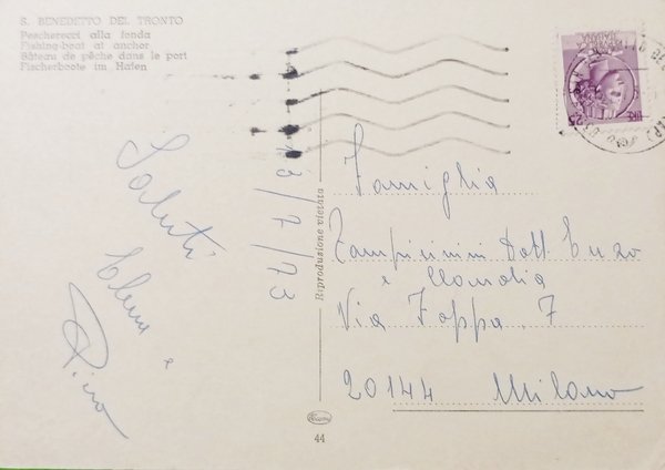 Cartolina - San Benedetto del Tronto - Pescherecci alla fonda - 1973