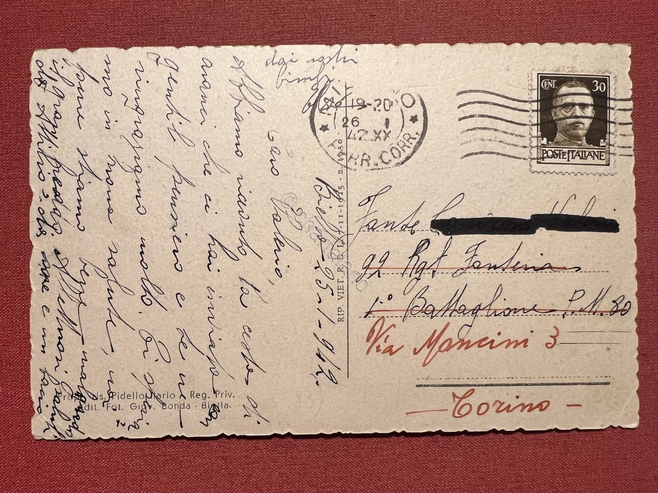 Cartolina - Sordevolo ( Biella ) - Piazza Comunale e Chiesa Parrocchiale - 1942