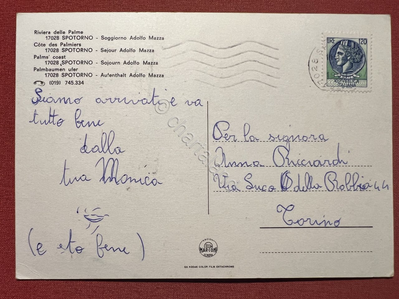 Cartolina - Spotorno ( Savona ) - Soggiorno Adolfo Mazza - 1969