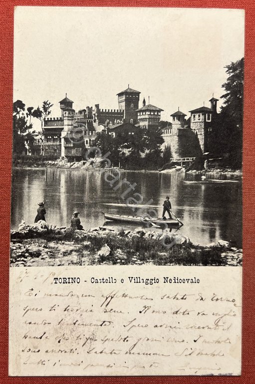 Cartolina - Torino - Castello e Villaggio Medievale - 1907