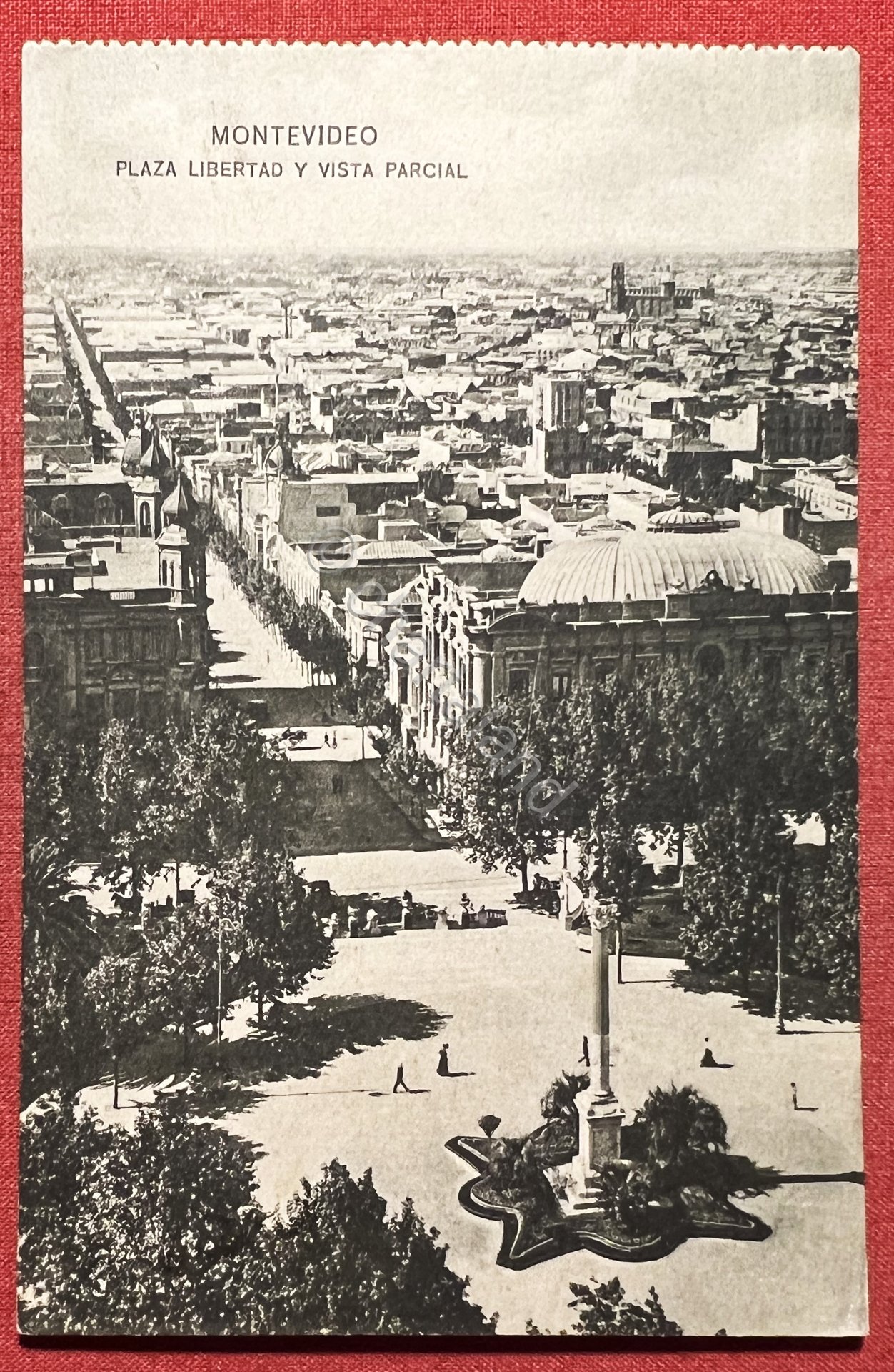 Cartolina - Uruguay - Montevideo - Plaza Libertad y vista parcial - 1925