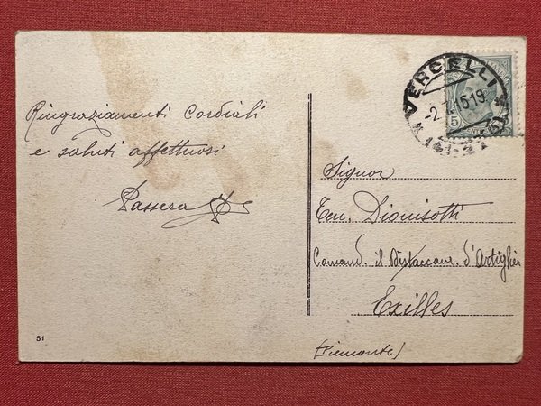 Cartolina - Vercelli - Basilica di S. Andrea e Monumento a Umberto I - 1915
