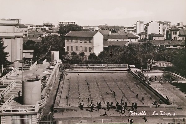 Cartolina - Vercelli - La Piscina - 1955 ca.