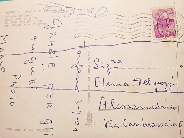 Cartolina - Versilia - Marina di Pietrasanta - Spiaggia dall'aereo - 1961