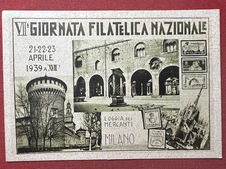 Cartolina - VII Giornata Filatelica Nazionale - Loggia dei Mercanti, Milano 1939