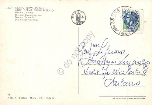 Cartolina Abano Terme Hotel Terme Mioni Pezzato piscina animata (Padova)