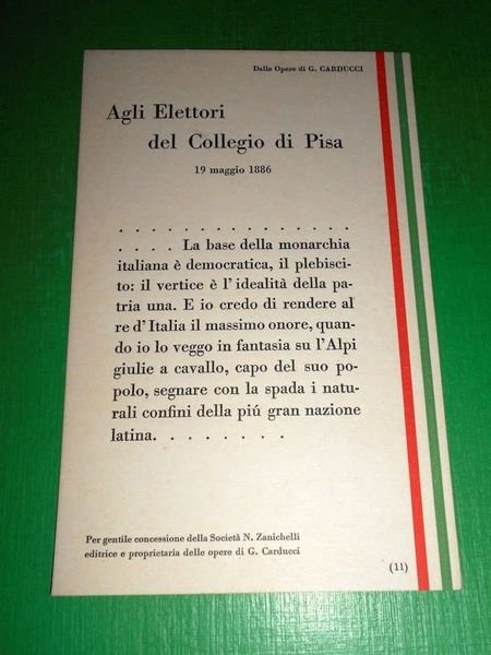 " *** Cartolina Agli Elettori del Collegio di Pisa - Dalle Opere di G. Carducci - WWI. La cartolina non è viaggiata. Databile 1915 ca. Formato piccolo. Rif. numero 36113 Per appassionati studiosi e collezionisti