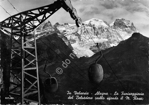Cartolina Alagna Funiseggiovia del Belvedere 1955 (Bergamo)