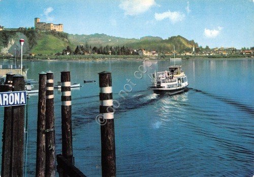 Cartolina Angera Rocca vista da Arona battello (Novara)