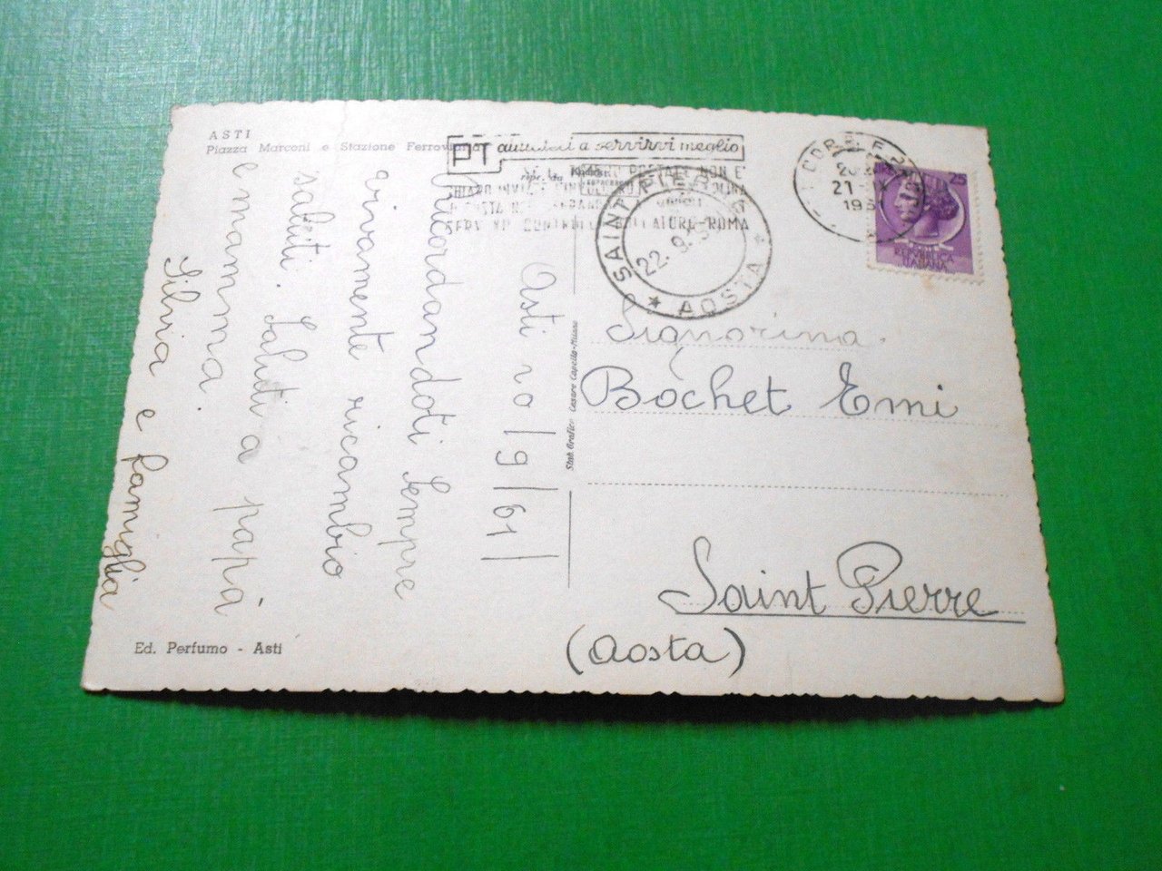 Cartolina Asti - Piazza Marconi e Stazione Ferroviaria 1961 Datata 1961. Cartolina formato grande - viaggiata Condizioni molto buone, come da foto Per appassionati, studiosi e collezionisti