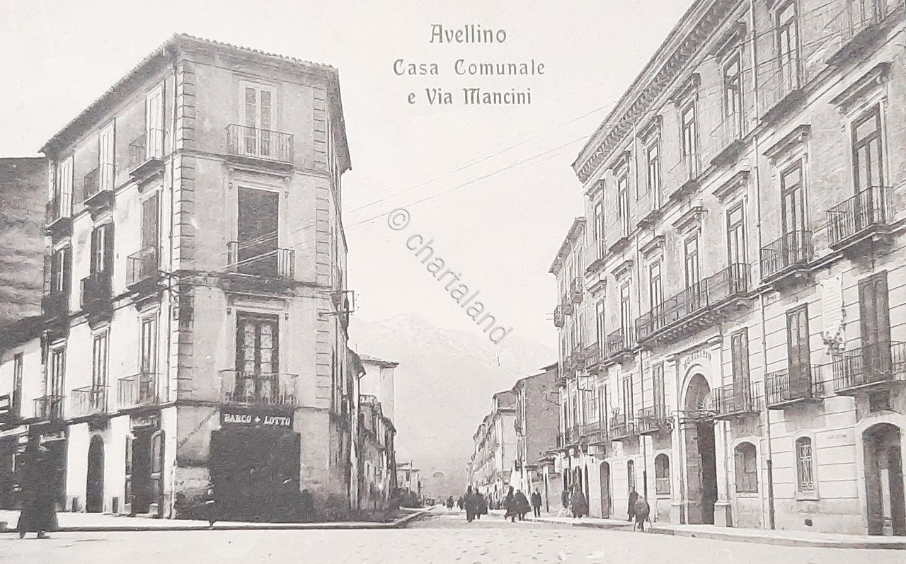 Cartolina Avellino - Casa Comunale e via Mancini - 1918