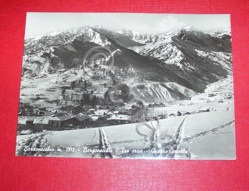 " *** Cartolina raffigurante Bardonecchia - Borgovecchio - Tre Croci - Quattro Sorelle. La cartolina è viaggiata nel 1957. Per appassionati studiosi e collezionisti
