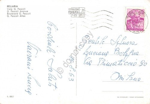 Cartolina Bellaria Via Pascoli Hotel Splendid 1963